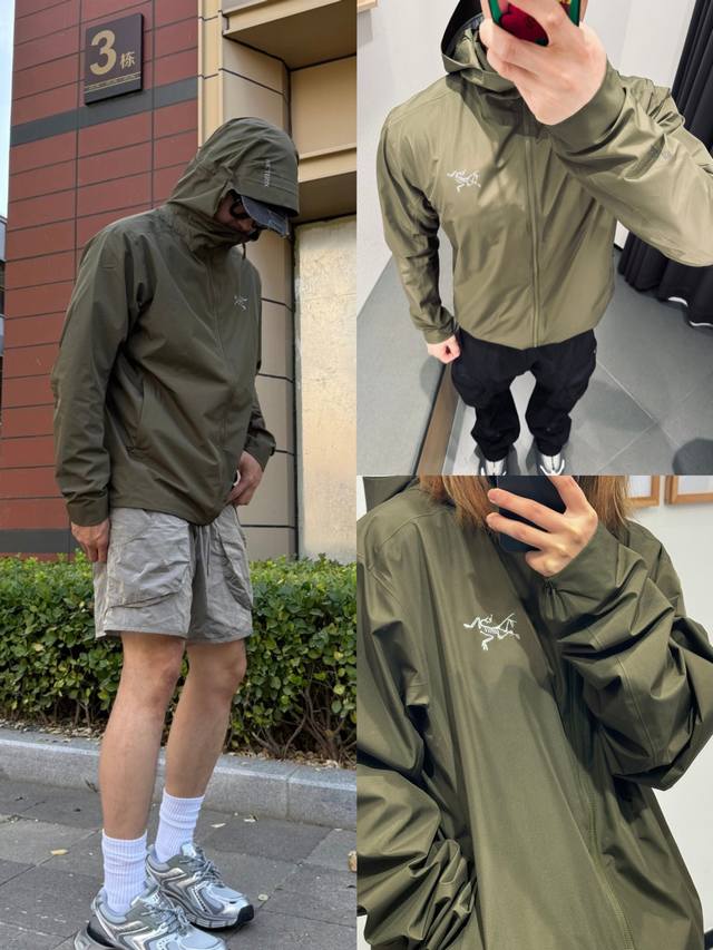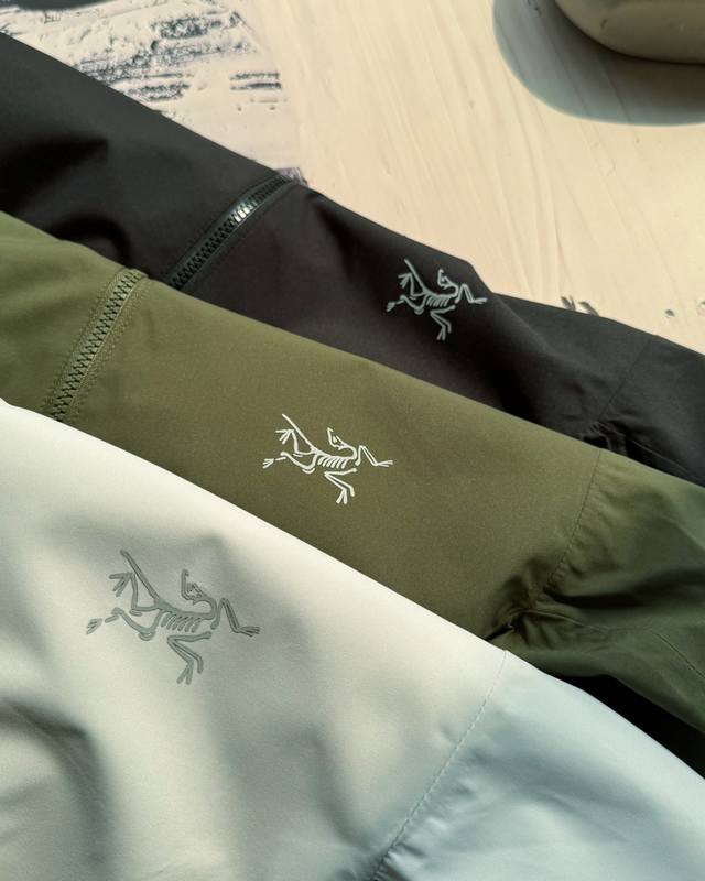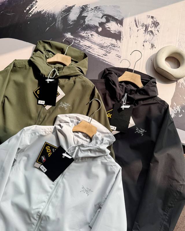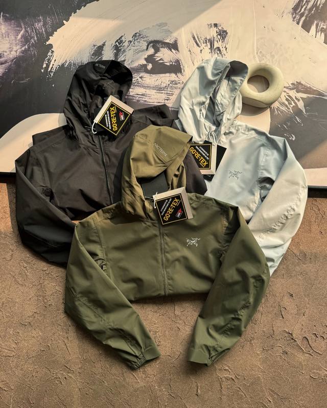 Arc'Teryx Solanohoody hooded softshell jacket, currently sold on the official website. It features Gore-Tex Windstopper fabric, offering windproof, water-repellent, and breathable properties. The body lining is made of polyester knit, while the sleeves and hood lining are made of nylon plain weave fabric, making it soft and easy to put on and take off. It also features a fluorine-free DWR durable water-repellent treatment, suitable for outdoor activities or urban commuting in various environments.