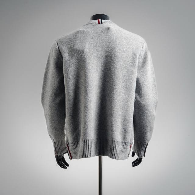 Thom Browne 23Ss New Season Four-Striped Crew Neck Pullover Sweater (Unisex) Thom Browne is a visionary designer, known for his ingenious tailoring. He boldly challenges traditional proportions, aiming to reinterpret sweaters. For a youthful and playful unisex and preppy look, try Thom Browne's modern preppy shirts and classic footwear. The brand's iconic four-stripe detail appears in many of its sportswear and knitwear pieces, making it highly recognizable. Sizes: S, M, L