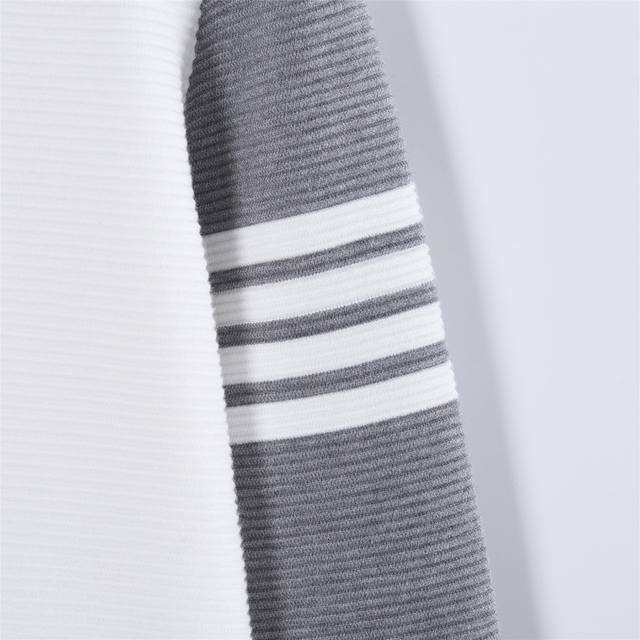 Thom Browne 25Fw Four-stripe Color-blocked Preppy Knit Sweater Thom Browne is a visionary designer, known for his ingenious and meticulously tailored designs. He boldly challenges traditional proportions, aiming to reinterpret sweaters. If you're looking for unisex and preppy pieces with a youthful and playful vibe, try Thom Browne's modern preppy shirts and classic shoes. The brand's iconic four-stripe detail appears in many of its sportswear and knitwear pieces, making it highly recognizable. Size: S-XL