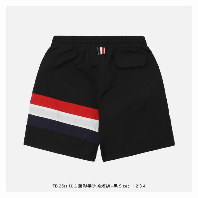 Thom Browne 25Ss Red, White and Blue Ribbon Beach Shorts - Black