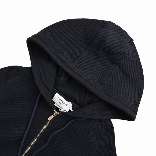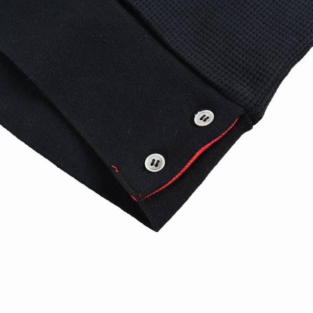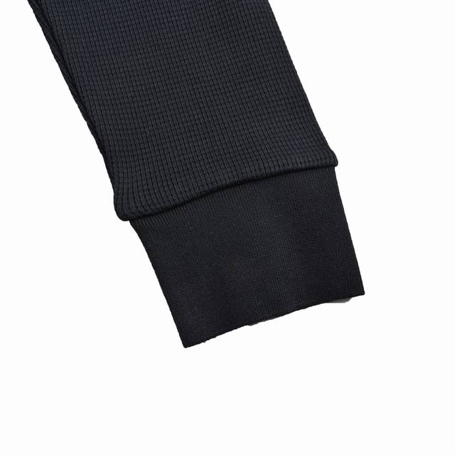 is made of 420g custom-woven and custom-dyed waffle fabric. It uses a ribbed circular machine cross rib weave, with 32-count 3-ply yarn incorporated into the needle holes. The ultra-heavy, tightly knitted process gives the fabric a delicate texture, a soft, thick and smooth feel, and a certain sense of weight. It also has good breathability and is extremely comfortable and skin-friendly when worn next to the skin. The material is combed, and the cotton yarn is from Huafu Color Spinning, Tb's official fabric supplier, to ensure the fabric's stability and comfort. The color will not yellow in sunlight! Heavyweight item, purchasing version.