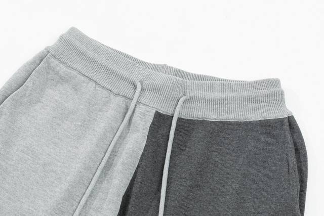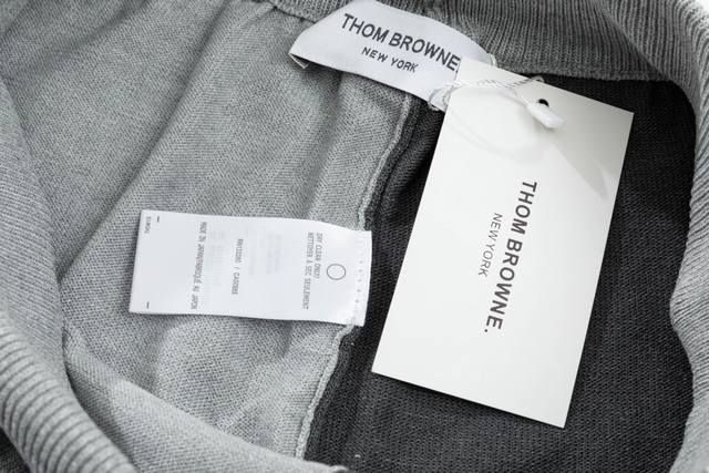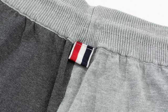 Thom Browne Ddd Ss New Knitted Shorts, custom-made fabric with wafer weave and jacquard knitting technique, tight and three-dimensional fit, 4-stripe stitching, custom drawstring hardware with a strong and smooth feel, comfortable and breathable to wear, with a stylish and casual three-dimensional look, light gray and dark gray color blocking, sizes M-XL DDD
