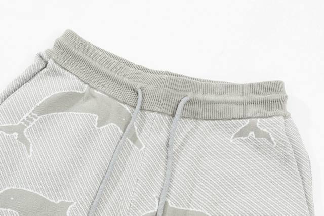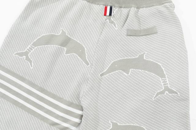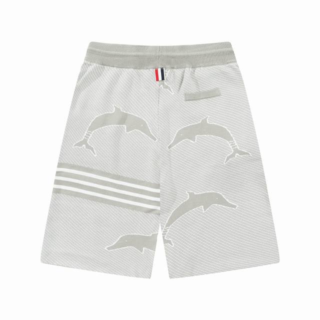 Thom Browne Ddd Ss New Knitted Shorts, custom-made fabric with wafer weave and jacquard knitting technique, tight and three-dimensional fit, 4-stripe stitching, custom drawstring hardware with a strong and smooth feel, comfortable and breathable against the skin, stylish and casual look, grey dolphin style, sizes M-XL DDD