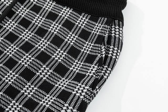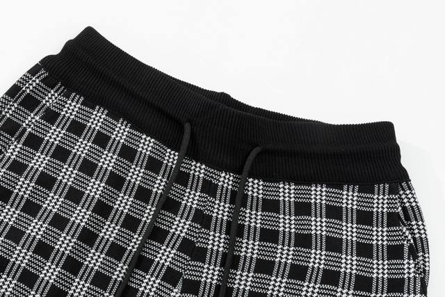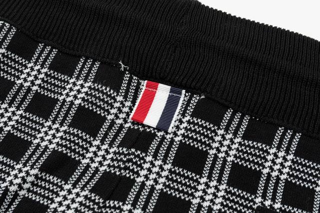 Thom Browne Ddd Ss New Knitted Shorts, custom-made fabric with wafer weave and jacquard knitting technique, tight and three-dimensional fit, 4-stripe stitching, custom drawstring hardware with a strong and smooth feel, comfortable and breathable to wear, with a stylish and casual look, plaid black, sizes M-XL DDD