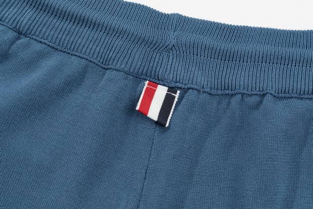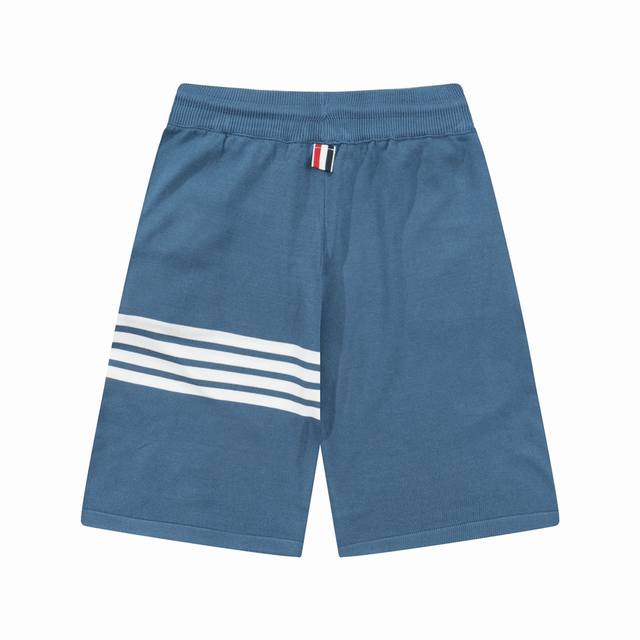 Thom Browne Ddd Ss New Knitted Shorts, custom-made fabric with wafer weave and jacquard knitting technique, tight and three-dimensional fit, 4-stripe stitching, custom drawstring hardware with a strong and smooth feel, comfortable and breathable to wear, stylish and casual look, blue, sizes M-XL DDD