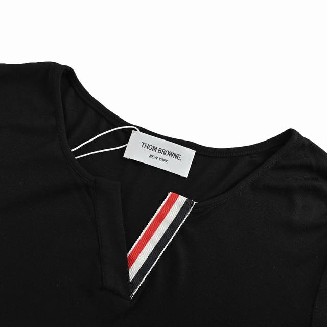 Thom Browne Tb 25Fw V-neck Webbing Long-sleeved T-shirt. The fabric is a blend of 70% Tencel, 20% wool, and 10% spandex. Tencel's unique comfort, breathability, luster, stability, and antibacterial properties make this garment ideal for close-fitting wear. The wool is superfine Merino wool, mercerized to prevent shrinkage and eliminate the problem of wool scratching. A classic basic color, suitable for everyone, and the fit is excellent. Size: SL
