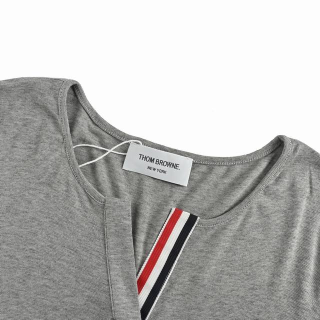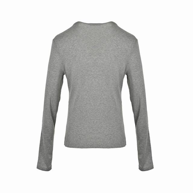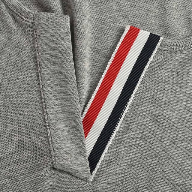 Thom Browne Tb 25Fw V-neck Webbing Long-sleeved T-shirt. The fabric is a blend of 70% Tencel, 20% wool, and 10% spandex. Tencel's unique comfort, breathability, luster, stability, and antibacterial properties make this garment ideal for close-fitting wear. The wool is superfine Merino wool, mercerized to prevent shrinkage and eliminate the problem of wool scratching. A classic basic color, suitable for everyone, and the fit is excellent. Size: SL
