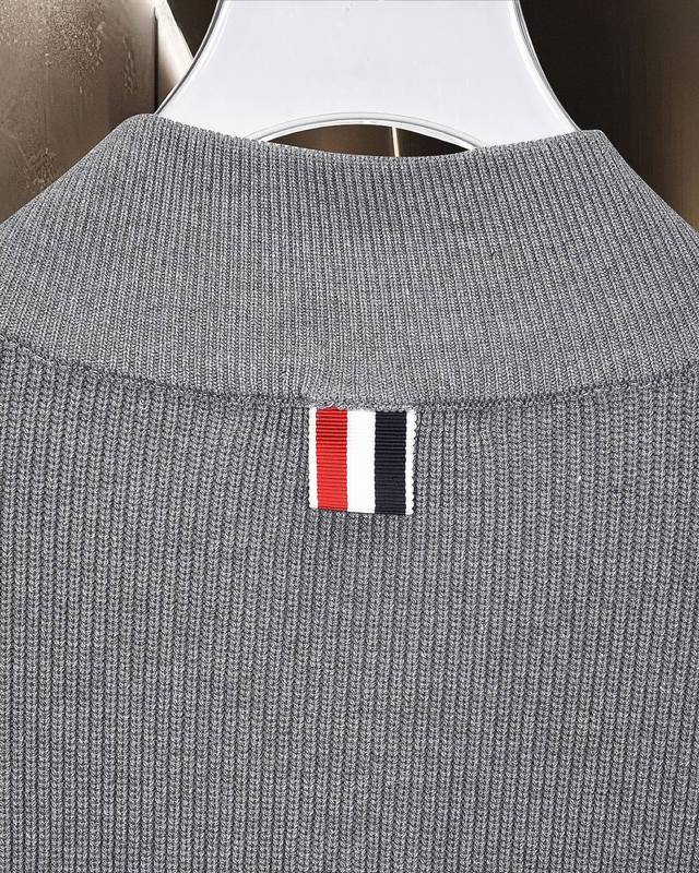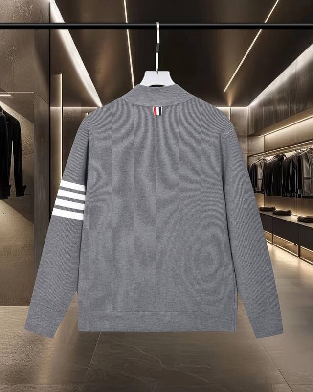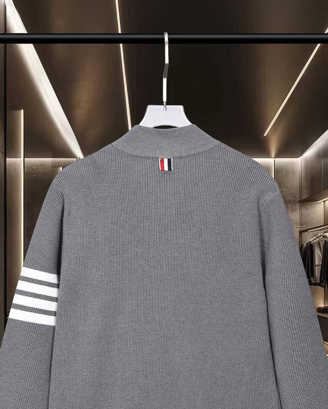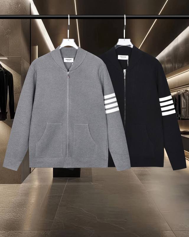 Thom Browne Tb Basic Classic Color Block Zipper Four Stripes Knit Cardigan Sweater Jacket Wool Sweater 2025Fw Official New Original Fabric Official Same Style Imported Wool Blend Fabric High-end Version, Customized Fabric with High Breathability and Comfort, Exquisite Craftsmanship, Perfect and Impeccable Details, Custom Logo Engraved Buttons, Complete Three Labels. Brand Elements Design Concept, Reflecting High Quality. Delicate and Soft to the Touch! Presents a Casual Cut, Superb Fit. Color: Black/Grey. Size: M-XXL.