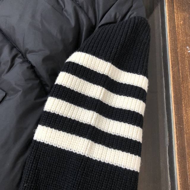 Thom Browne Tb brand knitted patchwork four stripes Ddd hooded 90% white duck down jacket for women, casual preppy style Ddd The simpler the better Ddd The simple and basic design of the garment body uses horizontal stitching technology, so it is not bulky at all. The sleeves and hood are made of knitted patchwork Ddd While beautifying the proportions, it can also modify the waist curve, easily achieving a slim waist in winter. The just-right length is suitable for all heights and body types. It is versatile and outstanding. The inner filling is filled with new national standard 90% white duck down. The outer layer is light waterproof fabric for warmth. The overall design is slim but not tight. It is not waist-cinching, but it is flattering and slimming. It is suitable for all body types. The hood provides a sense of security. The design is really slimming and not bulky at all. It is a down jacket that is warm, practical and stylish~ Ddd Colors: Black, Gray, Apricot Ddd Sizes: S, M, L Ddd Ddd