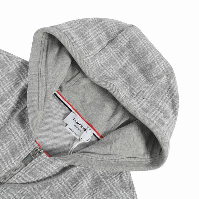 Thombrowne 22FW houndstooth jacquard striped jacket. Woven on a Stoll imported machine, this jacket features premium, multi-colored, ultra-fine yarn. Made with a 12-gauge imported Stoll machine, it features sesame dots and air-gapped tucks. The jacket features a European-style, exquisite access control zipper. The jacket is zipped up and down three times before it's even finished. This jacket looks great on the body! This is a shopping-only item. Sizes: 1-4.
