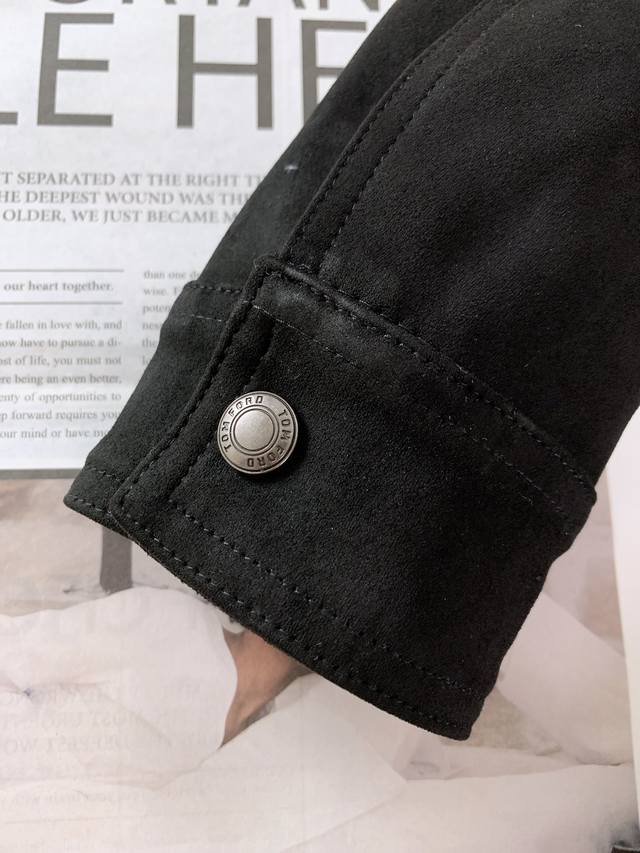 Tom Ford 2025Fw Fall/Winter New Arrival Suede Jacket. Crafted from premium suede, it boasts a soft, delicate touch and an understated yet luxurious sheen, exuding quality and showcasing impeccable taste. Exquisite "Tf" engraved buttons open and close smoothly, adding a touch of retro chic and enhancing the overall sophistication. The clean lines of the jacket, with its meticulously designed shoulder and waist, flatter the figure, making it suitable for both casual and formal occasions, projecting a cool and stylish image. The smooth, matching lining is finely crafted, comfortable against the skin, and showcases the brand's dedication to craftsmanship. Size: M-XL