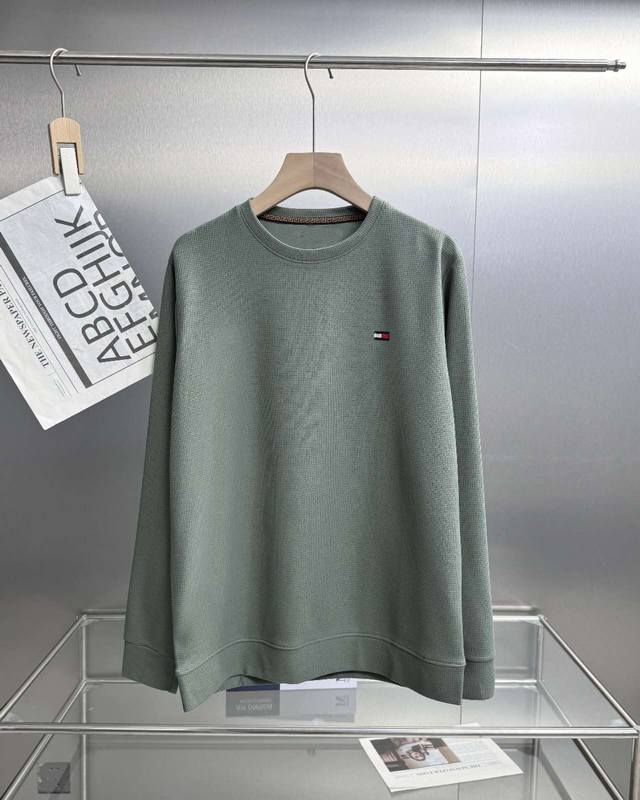 Tommy Men's Autumn Long-Sleeve Waffle Sweatshirt, made of pure cotton, perfect for men's daily commutes. A truly high-tech product, ideal for casual, business, and sportswear. Features include 3D cutting and tailoring for a sophisticated and luxurious design. The overall garment boasts advanced craftsmanship, including a soft, 3D logo for a premium feel and meticulous workmanship. Made with outdoor quick-drying stretch polyester fiber, it's comfortable, breathable, soft, and has a beautiful drape. It won't wrinkle and dries quickly. Multiple panels are stitched together, and there's a small slit at the hem. It flatters the figure. The packaging and accessories exude a sense of prestige. A must-have! Colors: Black, Navy Blue, Apricot, White, Green. Sizes: M-3XL. M: Chest 104cm, Length 72cm, Shoulder/Sleeve Length 60cm. L: Chest 108cm, Length 74cm, Shoulder/Sleeve Length 61cm. XL: Chest 112cm, Length 76cm, Shoulder/Sleeve Length 62cm. 2XL: Chest 116cm, Length 78cm. Shoulder sleeve length 62