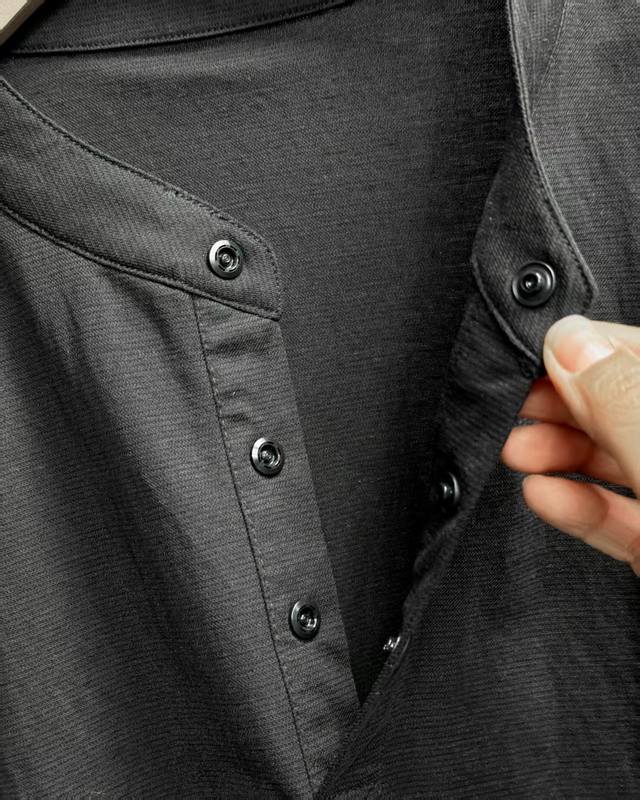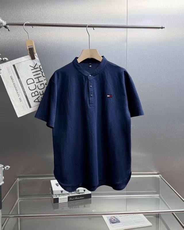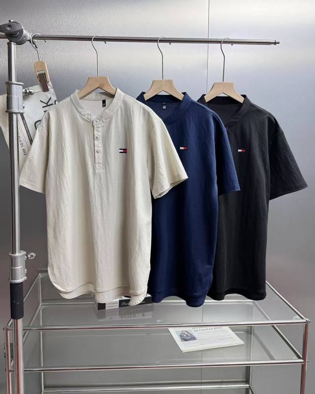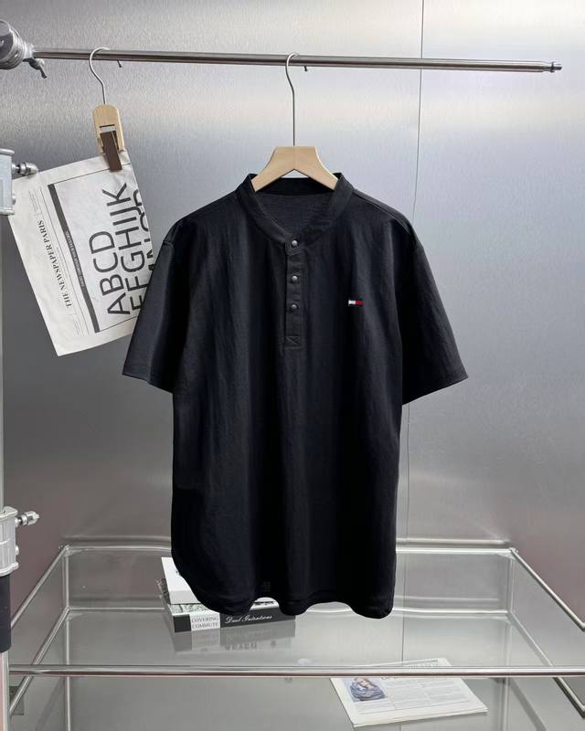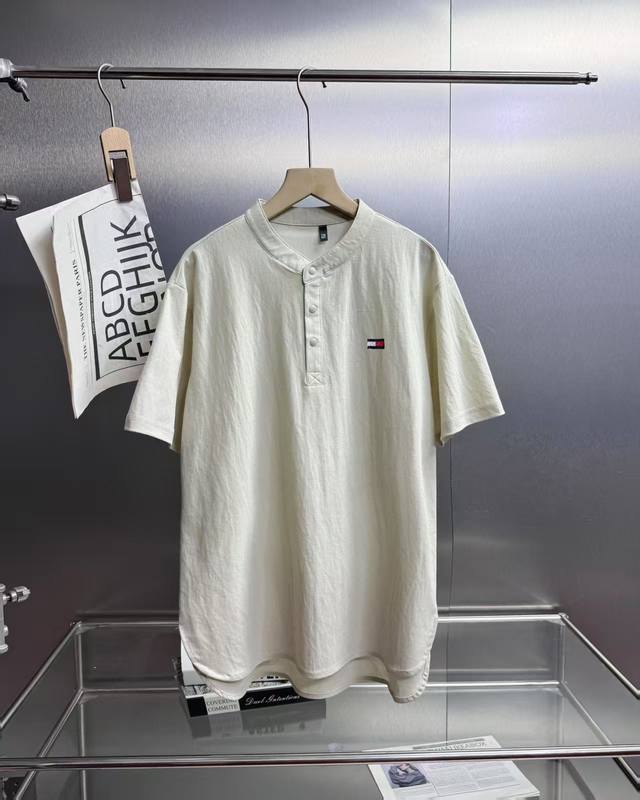 Tommy Tommy Retro simple design small stand collar linen three button short slee