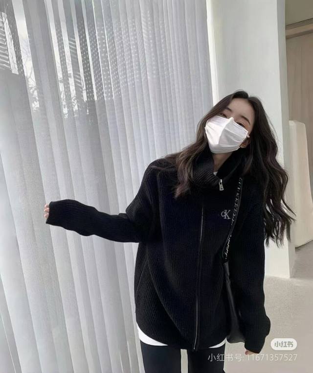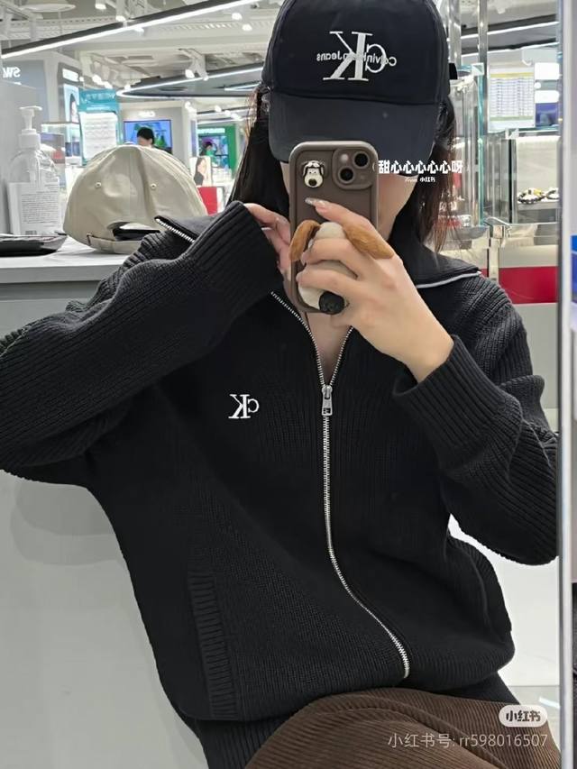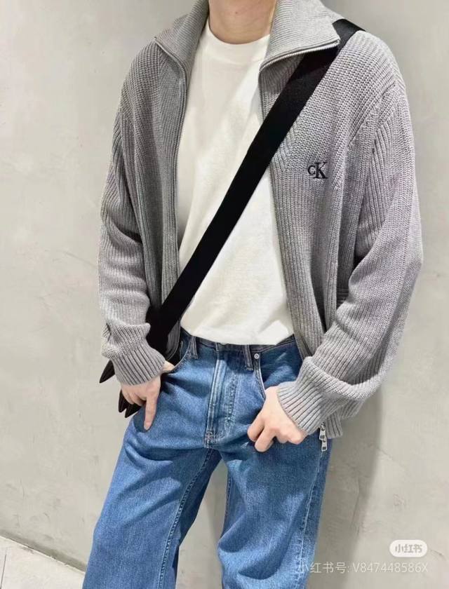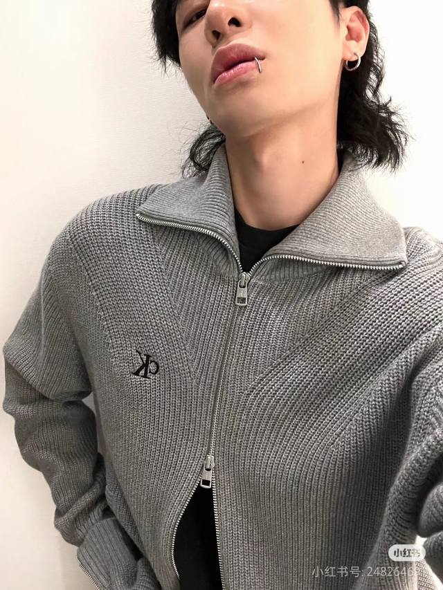 Calvin Klein Ck Calvin's simple and versatile spring, autumn and winter men and women's same style zipper knitted sweater jacket