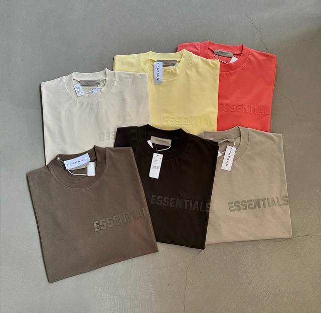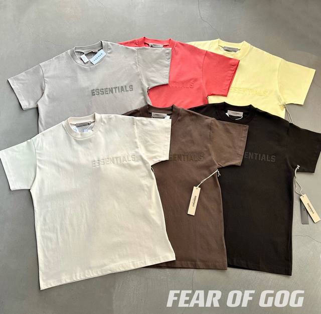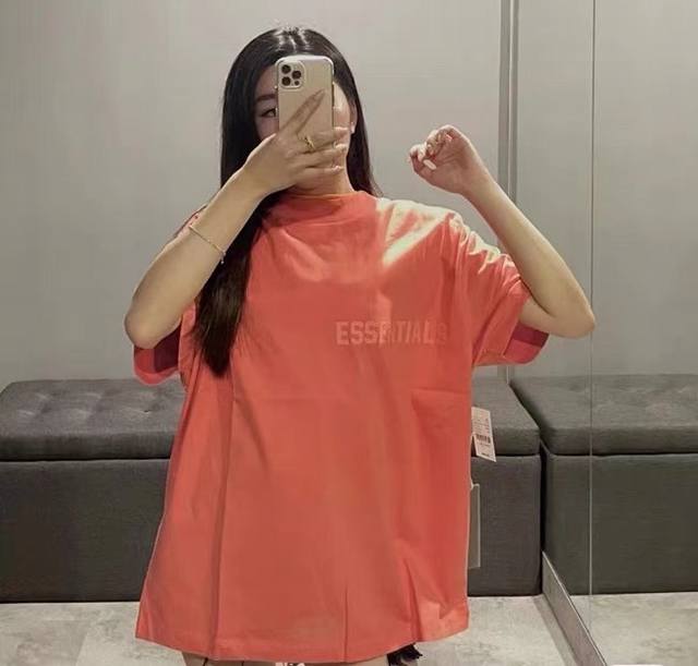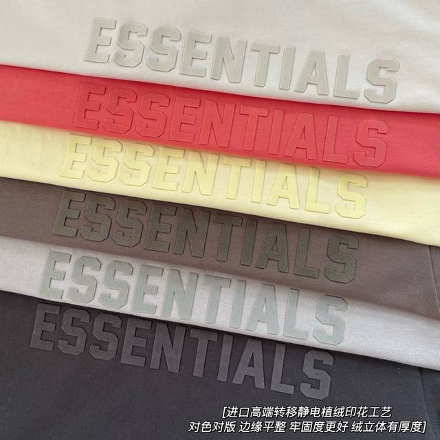 -Fear Of God Essentials 23Fw latest double line small letter flocking print heavy high street short sleeve couple style-
