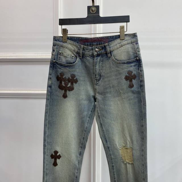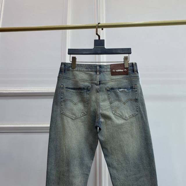 Fabric: Denim washed jeans! Luxury experience. Customer-supplied trade channels, simple and charming classic trousers use customer-supplied denim jeans, which are thick, comfortable and breathable. The high-quality craftsmanship of the tailoring is first-class, the overall design is very delicate, and the internal and external cuffs are designed to fit tightly. The use of poly-strand mechanical needle edge sealing technology highlights the brand's luxurious inner charm. The brand Logo is full and thick, and the chiseled buttons are thick and rigorous, which brings a new fashion taste to this mediocre trousers!
