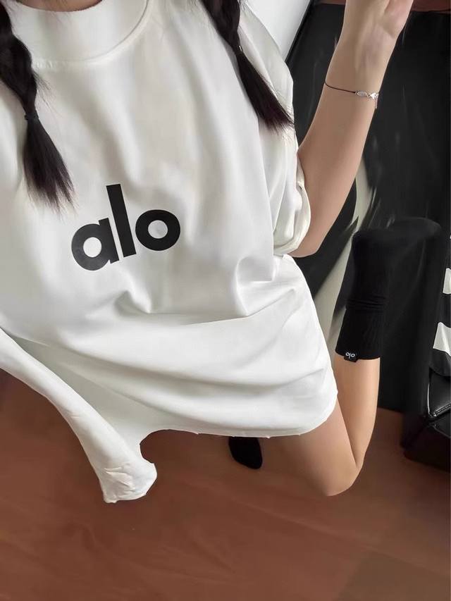 Top-level highest version Aloyoga Alo classic Alo letter front and back printing craft round neck short-sleeved half-sleeved T-shirt