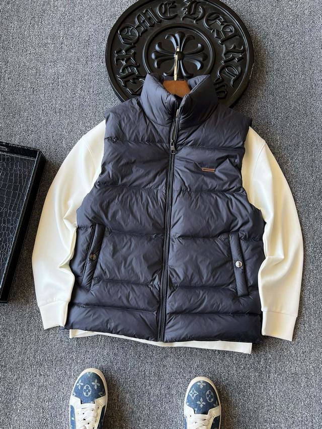 ! Zegna's new winter vest, pure white duck down from their boutique collection! Available at Henglong Plaza for around 10,000 RMB, style number: 9704. This Zegna vest uses 800D woven fabric, offering excellent windproof and some water-repellent properties. Its one-way breathability makes it extremely comfortable! The filling is pure 90% white duck down, with large feather clusters, each with exceptional loft. Pressed down, it slowly springs back to fullness