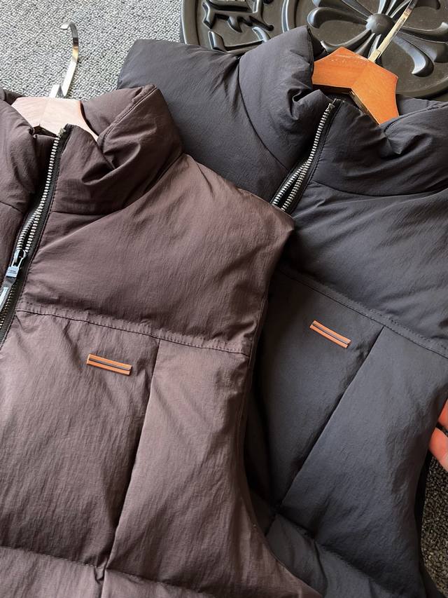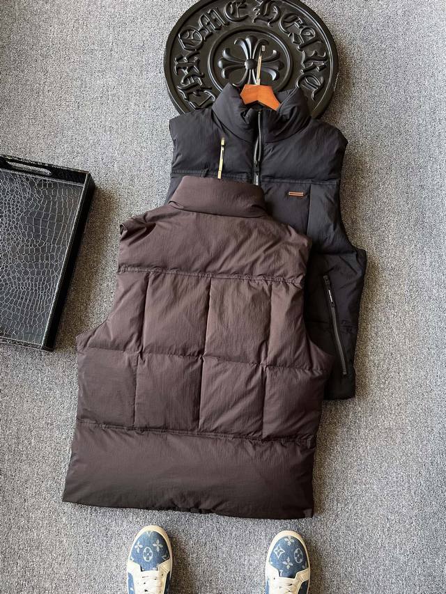 A global premiere! This hot-selling down vest is available in both domestic and international stores! Matte black and high-grade brown color, enjoy the quality of wearing it yourself, and it is also worth giving as a gift! It can easily handle any large business occasion or high-end private club! Highly recommended!