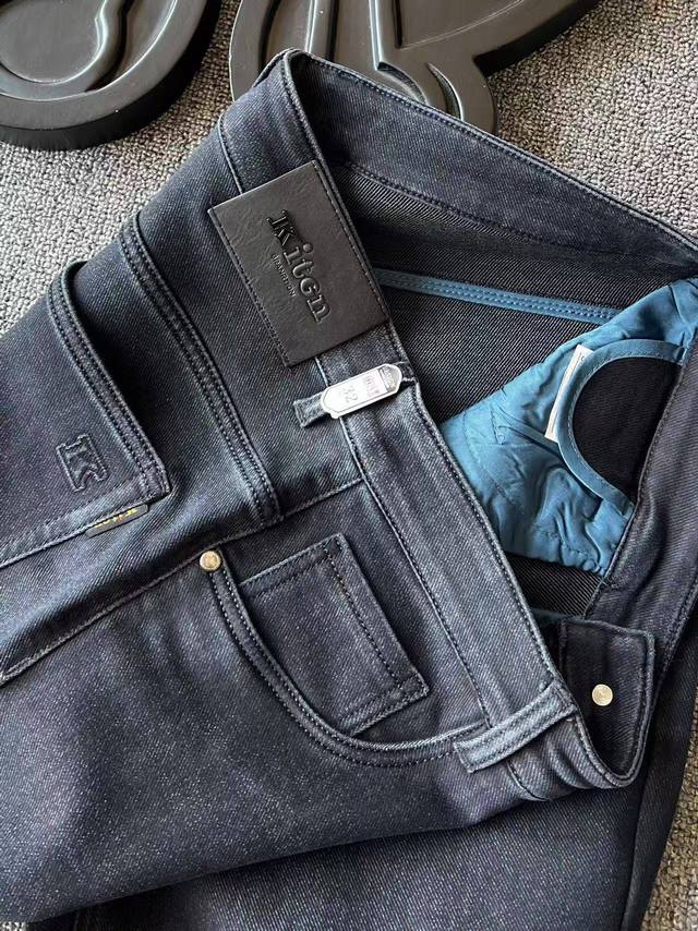Detail after detail! Kiton's new, high-end, heavily washed stretch denim pants! Three-dimensional, multi-process polished details on the front create a layered, premium feel. The waistband features a Kiton embossed leather label, Kiton details on the pockets, and Kiton woven labels on the side seams. The interior is meticulously reinforced for durability!