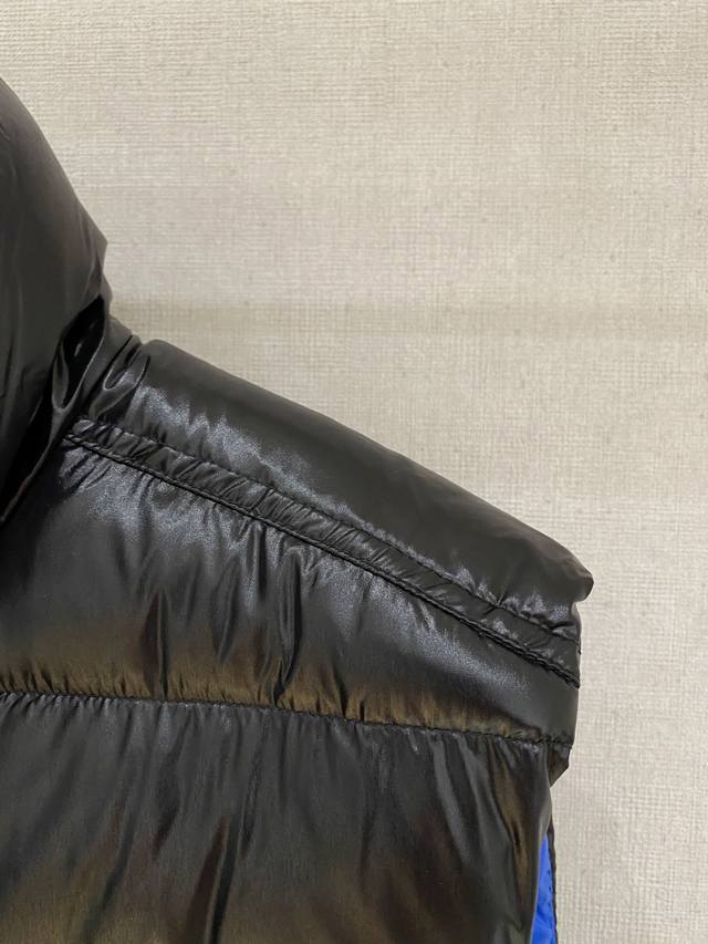 Top-tier Moner 2025 latest Mon*Ler Gien series vest. A classic Gien series piece that Mon releases every year. Available in stores simultaneously. Warm, lightweight, comfortable, and casual. Mon, as a representative of the down jacket industry for autumn and winter, possesses an unyielding classic style; its glorious history belongs to its supreme honor. The design inherits the classic tailoring of previous models. This down vest uses high-density polyamide fiber outer material, namely Toray 12D patent nylon fabric imported from Japan. This fabric has an extremely smooth and comfortable feel without any roughness, a bright and vibrant color, and is windproof, cold-resistant, and prevents down leakage. It is filled with 90% white duck down, offering excellent warmth, lightweight breathability, fluffiness, and no odor. The chest features Mon's signature embroidered felt craftsmanship. The seasonal design is upgraded and updated every year. The addition of a classic three-color wave-patterned woven ribbon with double-layered national flags on the side distinguishes it from previous years' models. Precious and substantial hardware details highlight the product's exceptional status. The double-ended zipper design also exudes a strong sense of modern fashion. The new striped placket design element reflects Mon's rich artistic flair. All these signs indicate its value and significance. A must-have item for everyone! Color: Black Sizes: M