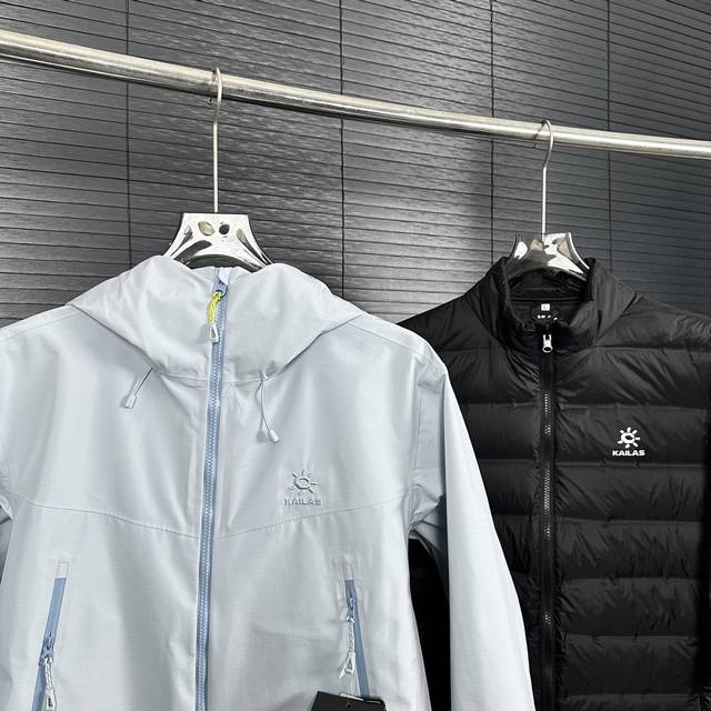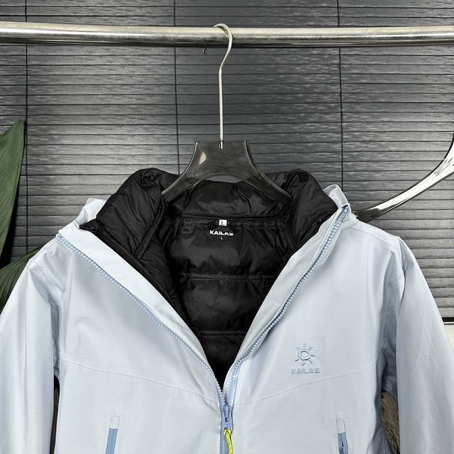 Top-tier real-shot comparison with standard goods Ddd Bogda Kailas 3-in-1 Down Jacket with detachable down lining for single wear Ddd Sports Outdoor Hardshell Professional Rainproof Windproof Wear-resistant 3-in-1 Down Jacket 10-pack includes Kailas cleaning agent Ddd Style number Dj62770 Ddd Fabric + Features: Gore-Tex 3L fabric, withstands the challenges of storms and snow in varying weather conditions, while providing a better wearing experience through windproof and breathability. Waterproof, windproof, breathable, lightweight, tear-resistant and wear-resistant, breathable 5000+ breathability. 90% white duck down filling Ddd This unique exterior uses high-density T800 Gore-Tex Ddd Memory 3-in-1 White Cocoate fabric, full-body seam sealing Ddd Curved hood brim for better wind and rain protection without obstructing vision, adjustable hood brim and drawstring hem Ddd Multiple embroidered details all using top-of-the-line Japanese Tajima embroidery machines Ddd High-opening chest pocket for easy access while carrying, compatible with climbing gear and harnesses, offering ample storage space. High-density technical fabric, windproof, abrasion-resistant, and highly waterproof, combined with a three-in-one process for a more structured and stylish look. Unisex, slightly slim fit, pressure-free for autumn and winter. Upgraded adjustable sleeve tabs for a better fit and enhanced protection, with increased Velcro coverage for easier one-handed operation. Ergonomic design for outdoor sports, improving athletic performance. Detachable windproof snow skirt, providing complete protection from wind and snow, meeting the needs of skiing and other outdoor sports. One-handed adjustable hem, preventing wind from getting in and out, with a drawstring for easy one-handed adjustment and removable foam to prevent slippage when wearing a harness. High-opening, large-capacity chest pocket with hand pockets, compatible with climbing gear and harnesses, allowing for easy carrying. Professional underarm ventilation zipper system, two-way opening and closing, rapid ventilation and heat dissipation, quickly restoring dryness and comfort, avoiding repeated removal and dressing. 360