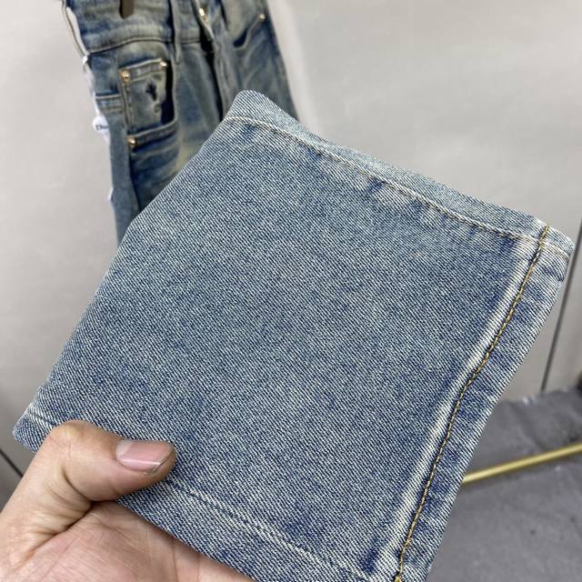 Top-tier version in stock. 2025 Spring/Summer European boutique new arrivals, super A grade, overseas trading company order source. Top-quality original single high-end men's custom-made fashion slim-fit straight leg jeans, size 528-40. Color: As pictured. Size: 29-40. Fabric: Denim washed denim jeans! Luxurious experience. Customer-supplied trade channels. Classic trousers with simple charm. Made with customer-supplied denim, thick, comfortable, and breathable. High-quality craftsmanship and tailoring are first-class, the overall design is very exquisite, and the edging design is meticulous. The use of multi-strand mechanical stitching technology highlights the brand's luxurious inner charm. The brand logo is full and thick, and the engraved buttons are thick and precise, bringing a new fashion taste to this otherwise ordinary trousers! Accessories: All three labels are complete.