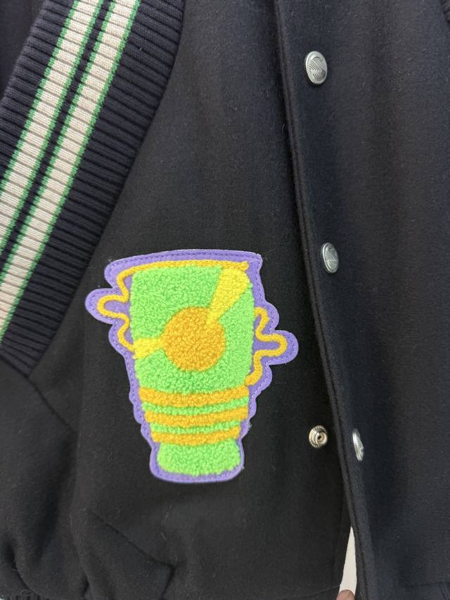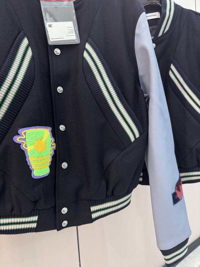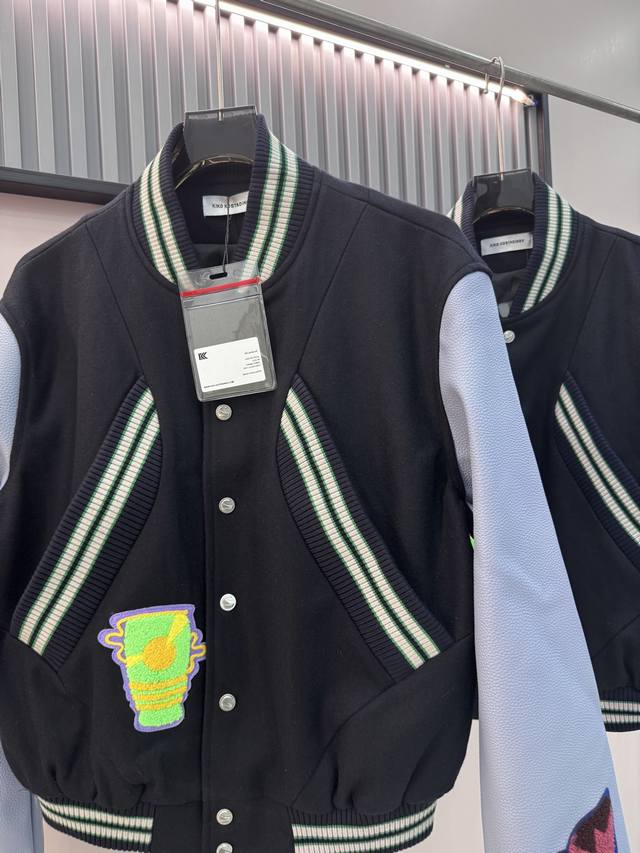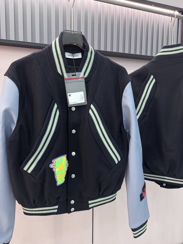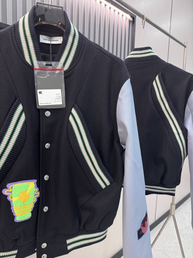 Top-tier version Ddd Kikokostadinov limited edition wool baseball jacket Ddd Fabric: Custom-dyed navy blue, 900g heavyweight, 70% wool, 30% cotton Ddd Sleeves: Custom-dyed suede base, two-layer leather with slits Ddd Embroidery: Imported machine, 10,000-stitch towel embroidery, color and pattern matching Ddd Accessories: Original mold, high-weight, all-gold, copper and zinc alloy buttons Ddd Fit: Original mold, short chest, wide sleeves, long waist with significant reduction Ddd Colors: Blue sleeves, pink sleeves, yellow sleeves Ddd Sizes: 44 46 48 50 DDD Ddd