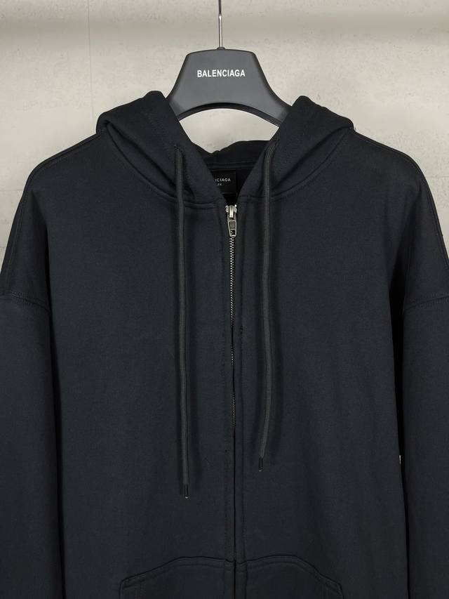 Top-tier version with detailed images. Official website quality Balenci*Ga Paris. 25Ss latest style. Masking tape printed cardigan zip-up hoodie. Same as brick-and-mortar stores. Fabric is Paris Zp custom-woven and dyed 100% cotton. Weight 460g, clean fabric surface, clear weave, soft and comfortable, ribbing is custom-dyed with no color difference. Classic pattern is printed with environmentally friendly imported materials, masking tape texture, clear lettering, and a three-dimensional effect. Replicas brick-and-mortar stores. Significantly different from common market goods, welcome to compare. Fit is OS loose drop-shoulder style. Unisex. Code: Bl259902. Colors: Black, Off-white. Sizes: Xs, S, M, L.