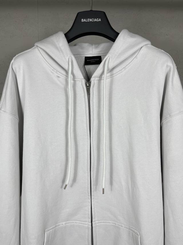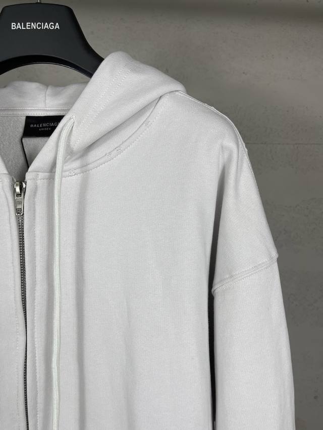 Top-tier version with detailed images. Official website quality Balenci*Ga Paris. 25Ss latest style. Masking tape print, washed and distressed cardigan zip-up hoodie. Same as brick store replicas. Fabric is Paris Zp custom-woven and dyed 100% cotton oversized sweatshirt. Weight 460g, clean fabric surface, clear weave, soft and comfortable, ribbing uses custom dyeing with no color difference. Classic pattern is printed with environmentally friendly imported materials, masking tape print, clear letters, three-dimensional effect. Replicas brick store replicas. Significantly different from common market goods, welcome to compare. Fit uses Os loose drop shoulder style. Unisex. Code: Bl259902 Color: Black, Off-white Size: Xs SML DDD