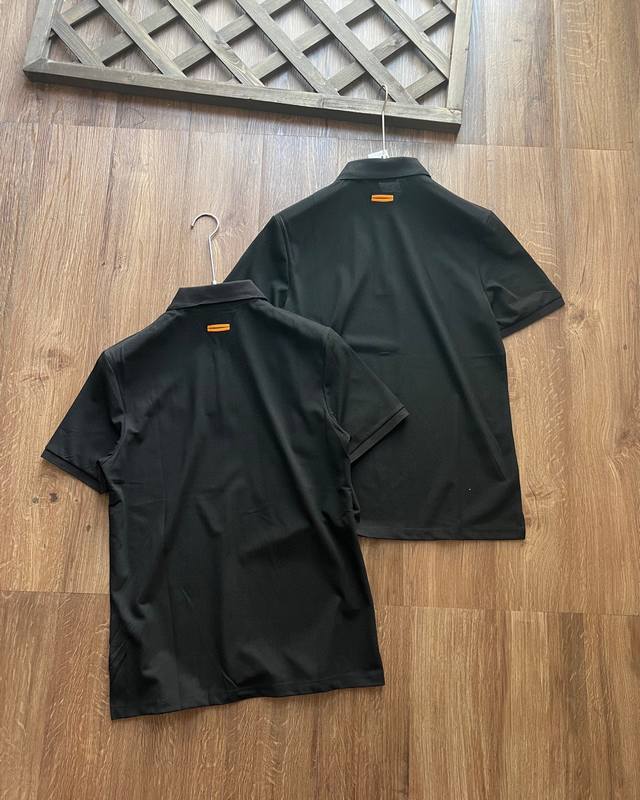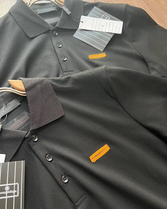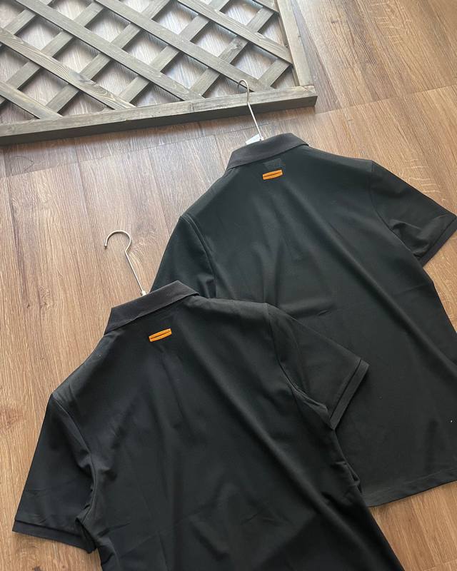 Tough Guy Charm Men's Wear The same Zegna Men's Wear Black Cotton Short Sleeve Polo Shirt as Wu Lei!!