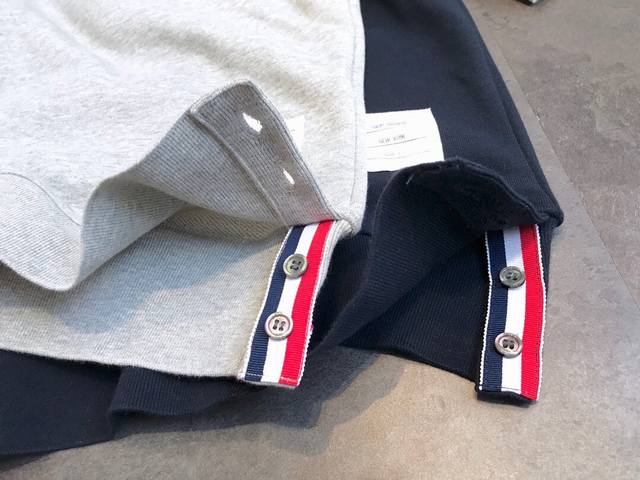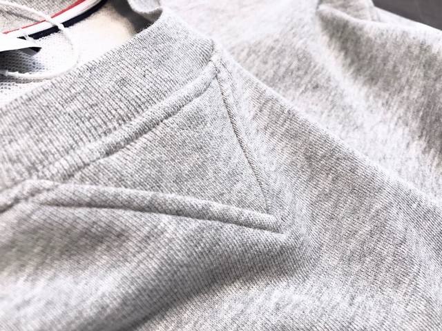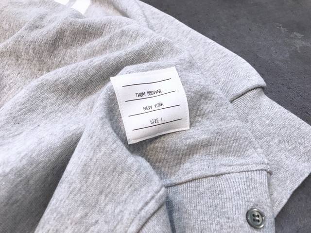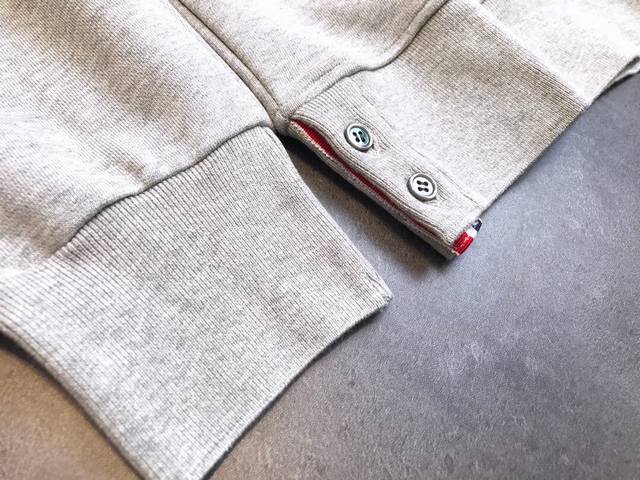 Trendy~ Original Tb round neck yarn-dyed sweater fabrics are all original colors, woven and dyed. The classic four stripes on the sleeves are all woven. The difference is that the ordinary offset version is matched with pure cotton thread bottom edge collar stripes, classic color stripes, the left and right hems of the clothes are all colored shell buttons, the left and right hems are all colored ribbons, pure cotton terry, customized 380G fabric, comfortable upper body, small V-neck stitching, the same style for men and women. Size ML Xl