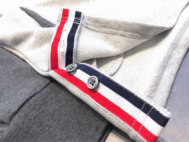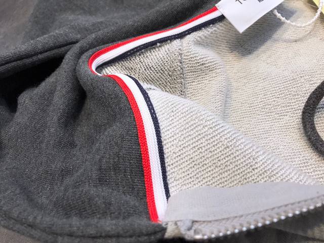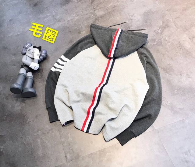 Trendy~Tb zipper webbing hooded jacket, the highest color-woven version, available on all networks, looks very good, it is a versatile jacket, the classic four stripes on the sleeves are all color-woven, distinguished from the ordinary offset version, the hat color is custom-woven and dyed, consistent with the fabric itself, classic color hood rope neck collar strip, classic color stripe on the back, overall color stripe down the hem, all colored shell buttons on the left and right, open letter zipper, unisex size ML Xl corresponds to 1 2 3