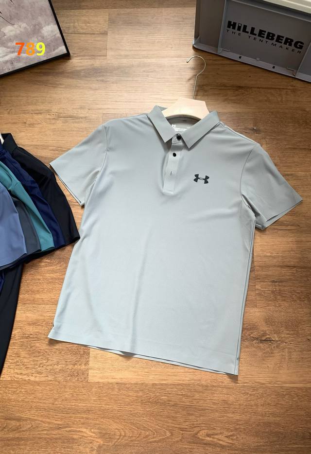 Under Armour lapel chest logo ice silk seamless short-sleeved T-shirt, summer Polo shirt short sleeve, business casual simple style, handsome and versatile on the body, summer must-have luxury fashion item
