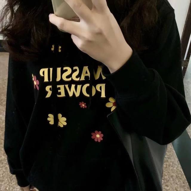 Updated terry cloth sweatshirt, style number: 820 Wassup printed small flower pure cotton hooded sweatshirt.