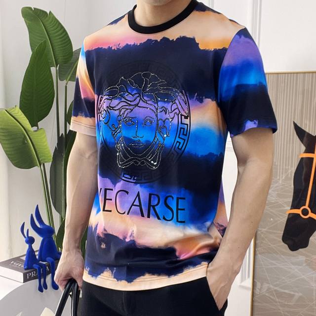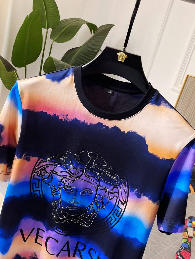V Sizhe 2025 Spring/Summer Premium Short-Sleeve T-Shirt, Official Website Synchronized, High-Quality Custom Made with Imported Double Mercerized Cotton Fabric, Top-Tier Factory Craftsmanship, Fashionable Brand Printed Rhinestone Logo Design, Soft and Delicate to the Touch, Skin-Friendly and Comfortable to Wear, Versatile and Casual, Excellent for a Stylish Look, A Must-Have for Handsome and Trendy Men. Normal Sizes: M-3XL