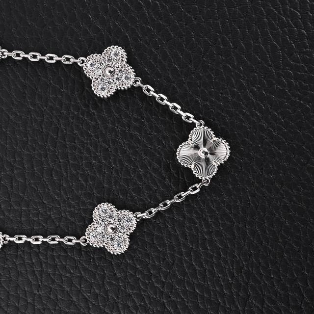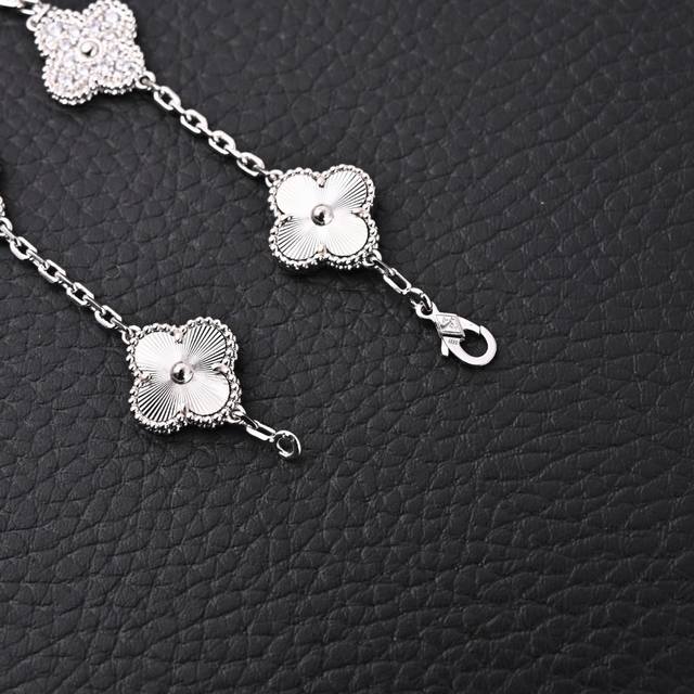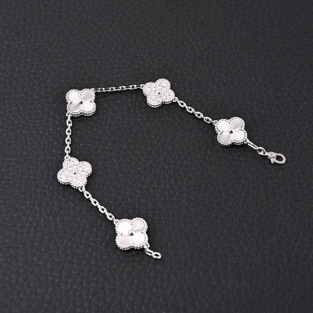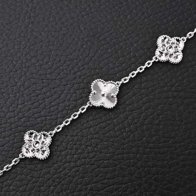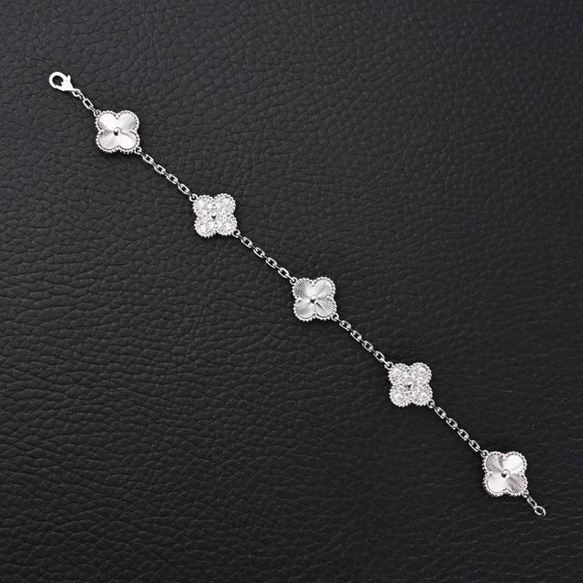 Van Cleef & Arpels Vca laser-engraved silver and diamond four-leaf clover five-flower bracelet