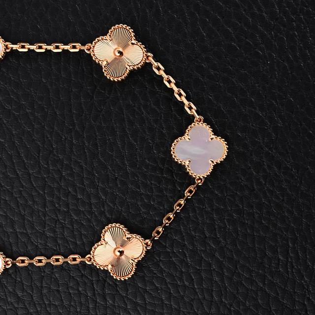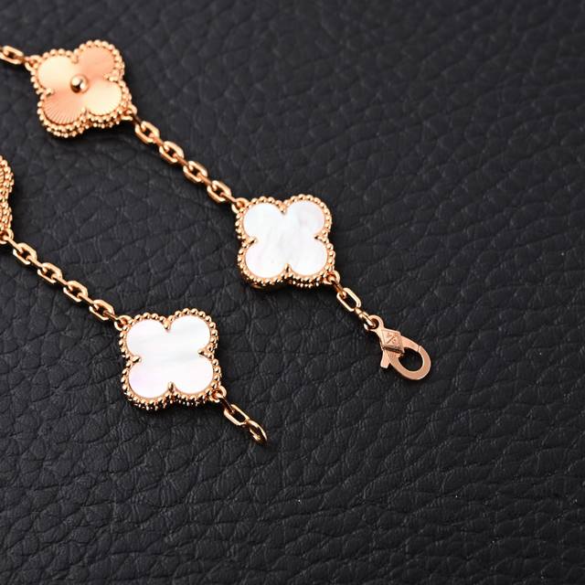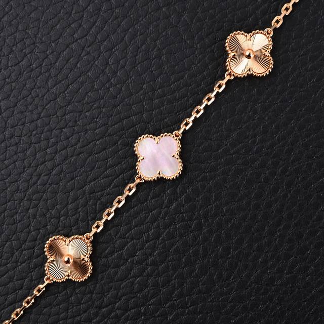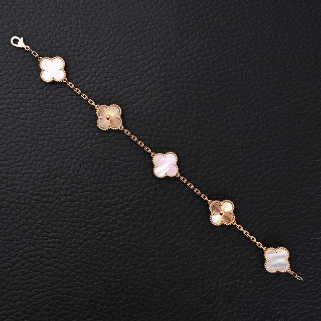 Van Cleef & Arpels Vca White Chalcedony Diamond Four-Leaf Clover Five-Flower Bracelet