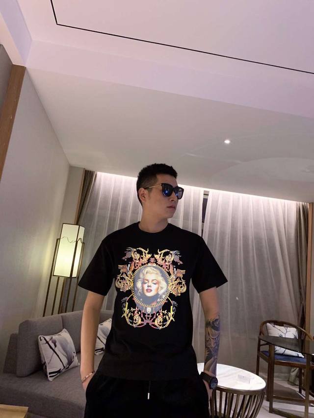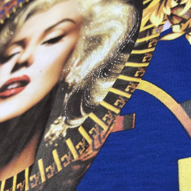 Vasha Spring/Summer New Arrival Brand Design Pattern 3D Digital Heavy Craft Black, White and Blue High-Quality Double-Strand Mercerized Cotton Fabric M~3XL DDD