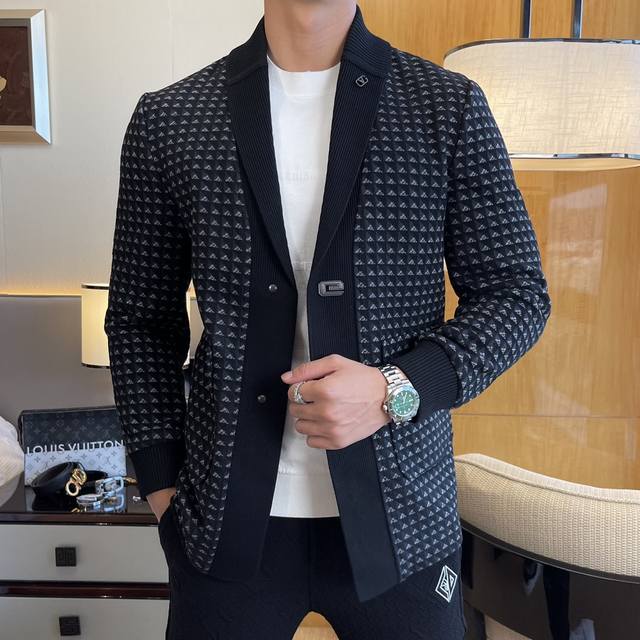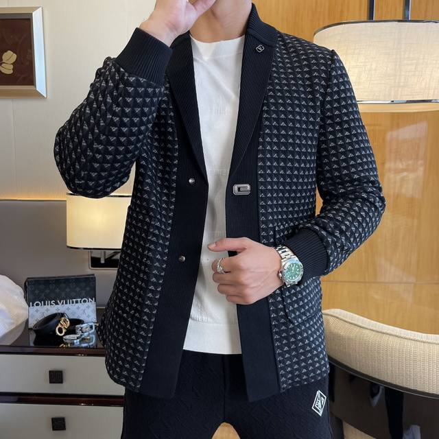 V-brand Autumn Hot Selling Knitted Jacket, made with custom high-quality polyester fiber fabric! Top fashion brand element logo design, complete with all three labels! Original hardware accessories, smooth lines, exquisite craftsmanship, superb fit, comfortable fabric, windproof and warm, easy to match and very stylish, a must-have for casual fashion men! Sizes: M-3XL. Model 178cm, 145kg wears L,