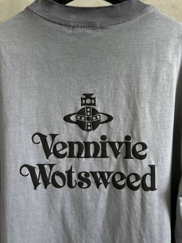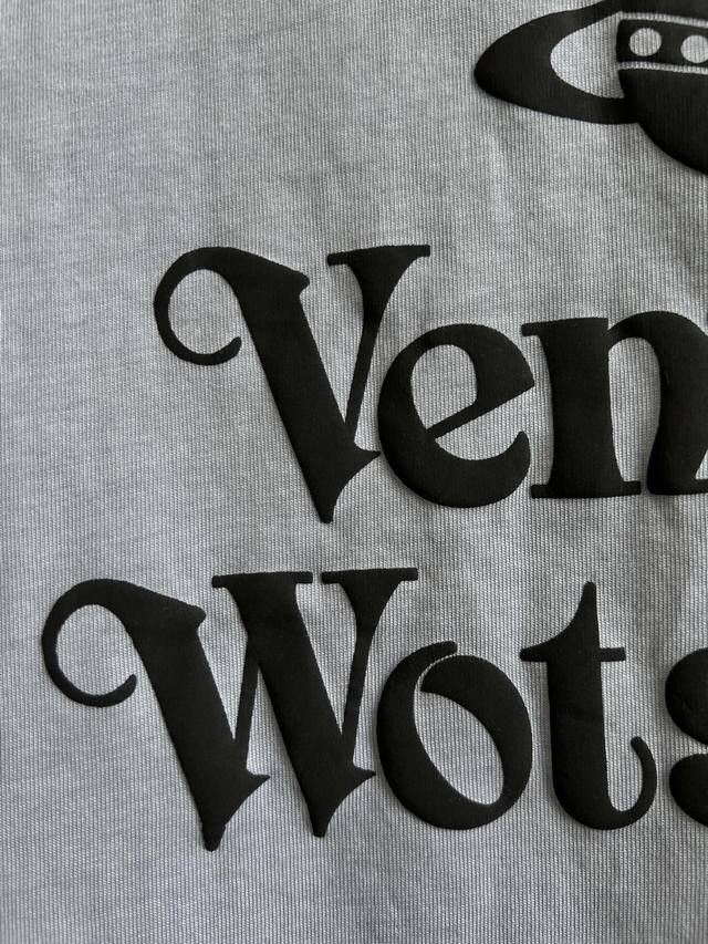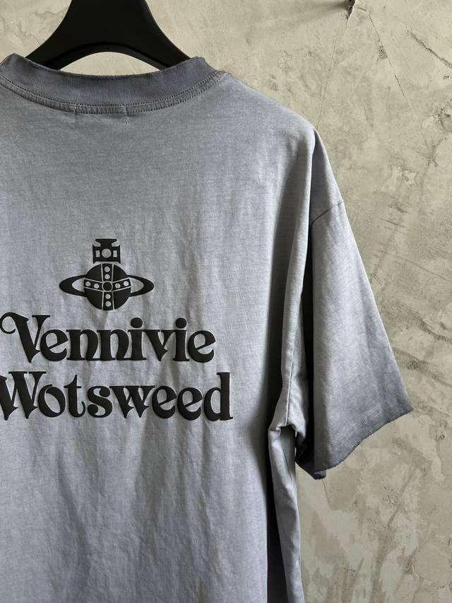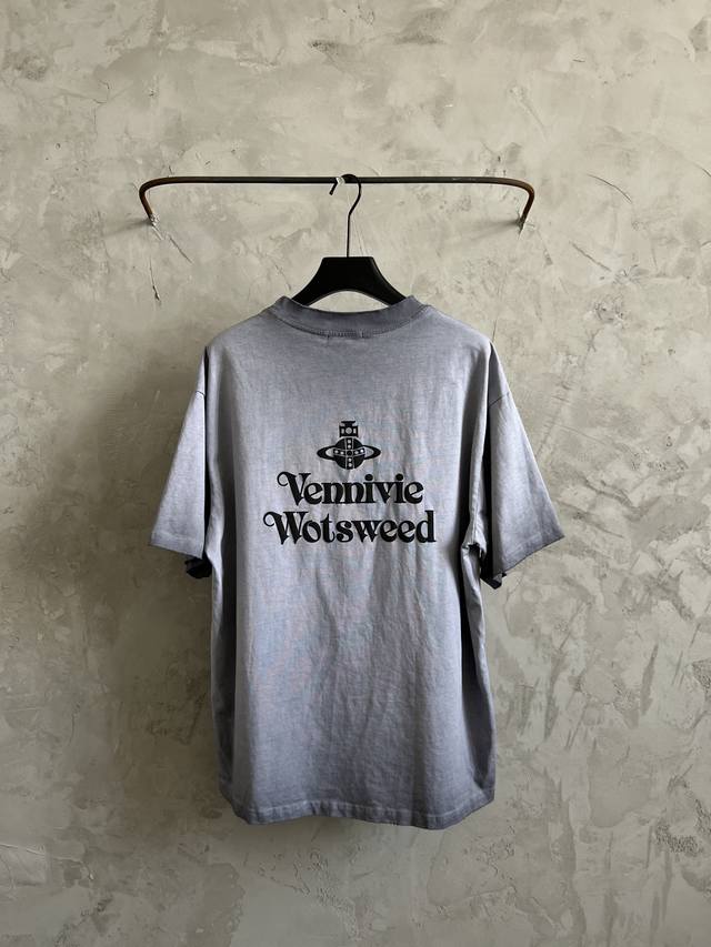 Vennivie Wotsweed tie-dyed gradient short-sleeved new summer foaming print 300g pure cotton double yarn fabric heavy cutting and frayed craftsmanship Each piece is hand-cut and very versatile A summer short-sleeved Queen Vivian series planet logo pattern Unisex loose version