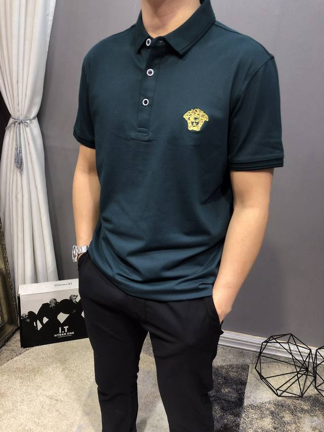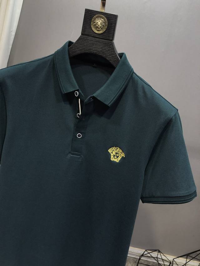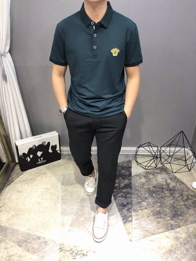Ver#Sace Original Quality, Original Export Item, Bestselling 20Ss New Polo Series Men's Short-Sleeve Shirt, Perfect Replica with Zero Difference, Made with Mercerized Polka Dot Cotton Fabric, Smooth to the Touch, Neat Stitching, and Perfect Details! Stylish and chic! Retail Sizes: L-4XL