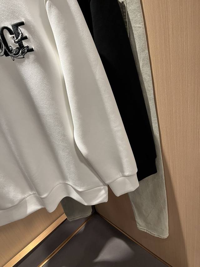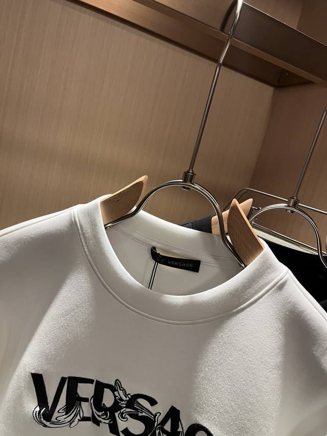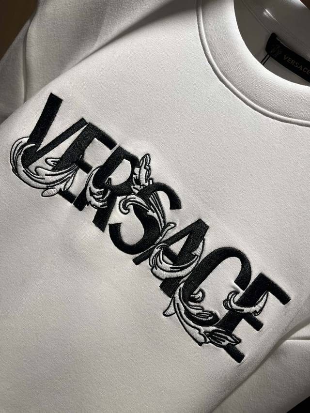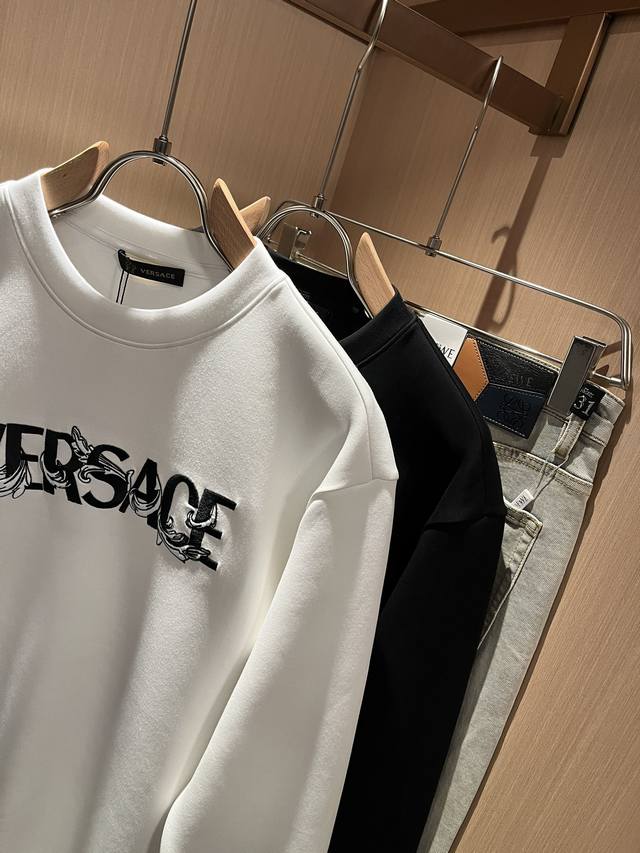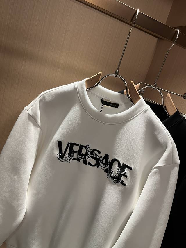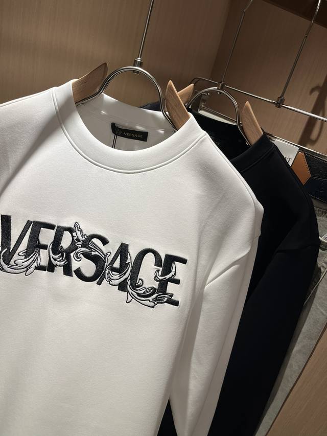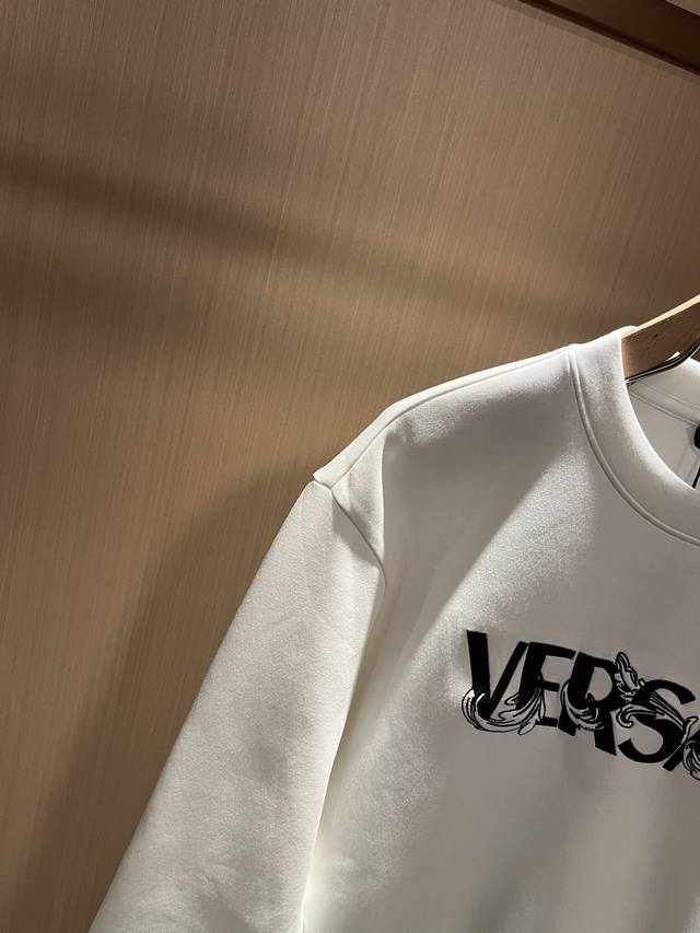 Vers*Ce 2025 Autumn/Winter New Arrival Original Long-Sleeved Sweatshirt. A recommended sweater from Vers*Ce trading company, featuring an embroidered logo design on the chest! The embellishments are extremely exquisite and three-dimensional, requiring advanced German equipment to produce, highlighting a visually stunning and luxurious look. The craftsmanship is exceptionally high, showcasing meticulous attention to detail. Made from imported pure cotton fabric, it is incredibly soft against the skin, with impeccable details. The fit is outstanding, eye-catching, and guaranteed to turn heads. A perfect piece to elevate your wardrobe, it looks incredibly stylish whether worn alone or layered. Sizes: S-XL