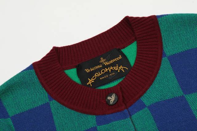 D Queen Mother Vivian Saturn Letter Plaid Retro Embroidered Cardigan