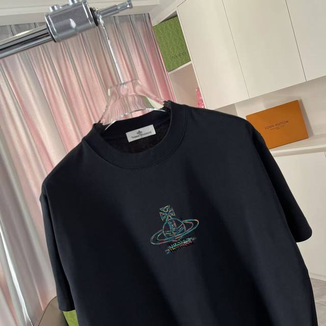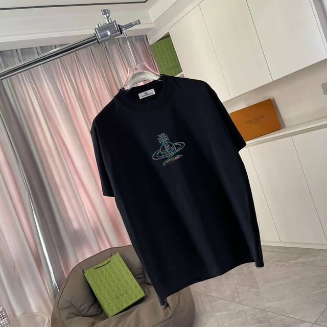 Vivienne Westwood 2025 Fall New Arrival Personalized Letter Logo Print Custom Fabric 300G Short Sleeve T-Shirt Unisex Sizes: S, M, L, XL, XXL (five sizes available) Colors: Black, White, Purple, Gray