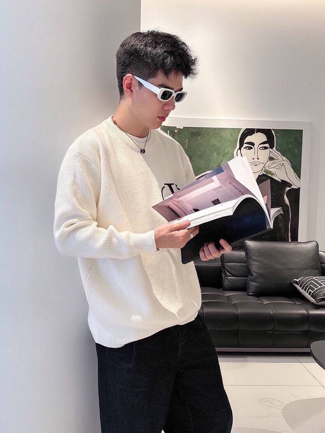 Vtaenlitn High-end custom-made new round neck knit sweater. Made with imported 7-needle machine knitting and wool yarn, this new season's main design is stunning in color, craftsmanship, and elements. High-quality workmanship with imported sweater fabric, excellent skin-friendliness, and impeccable details. Unisex style. Colors: Black, White. Sizes: M-3XL. Style Number: 8829