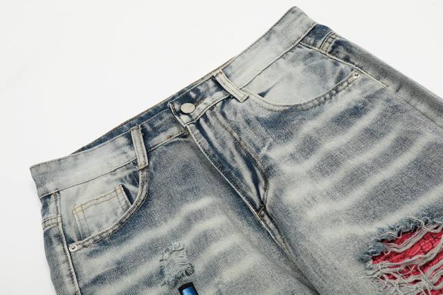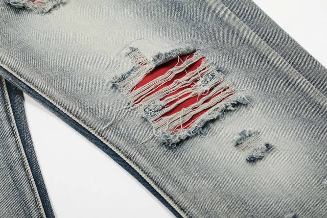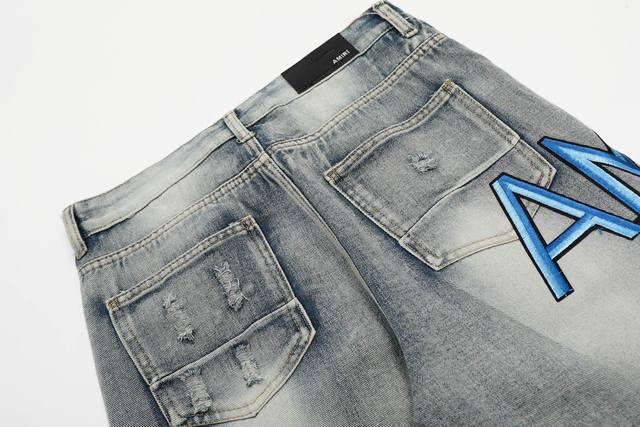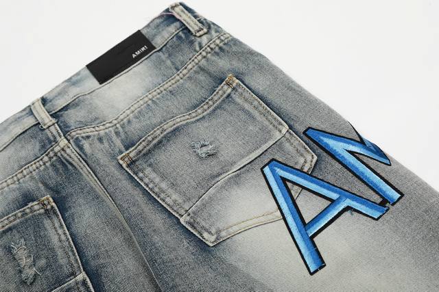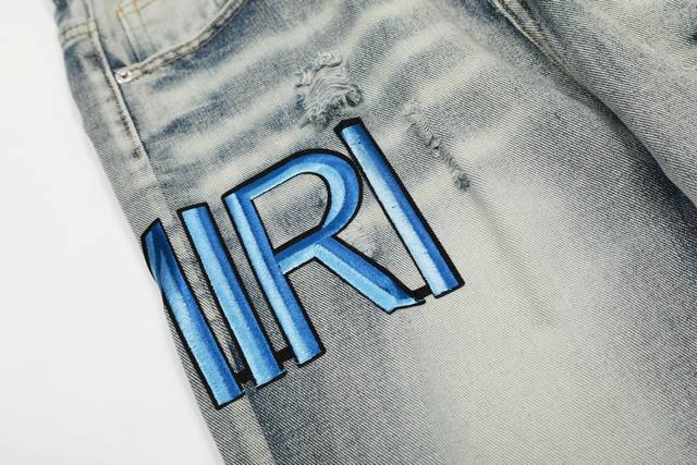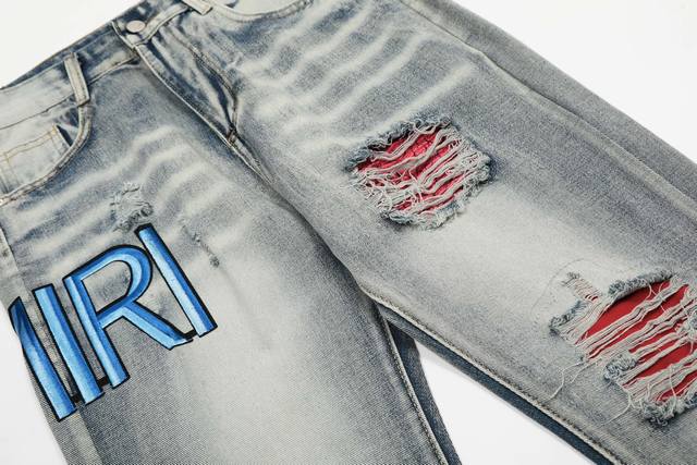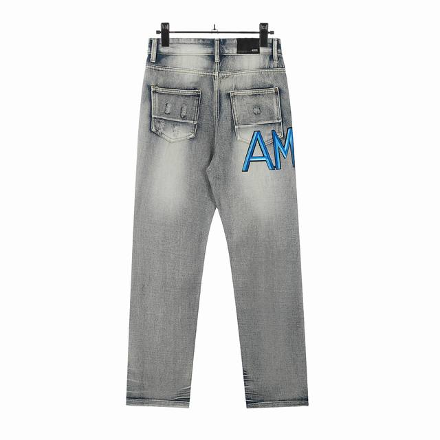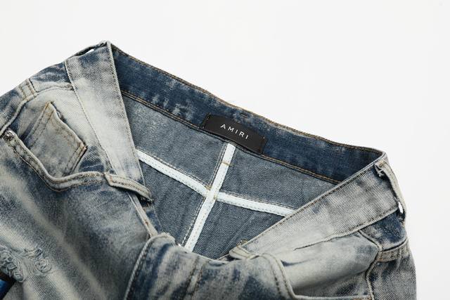 W24 Amiri classic embroidered ripped patch washed lightning pattern skinny jeans
