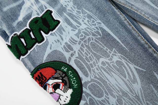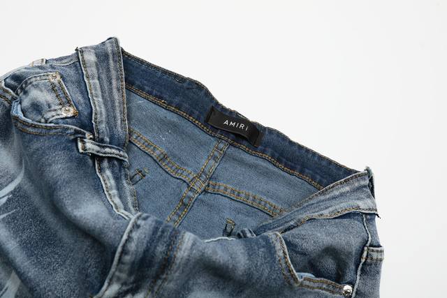 Amiri classic embroidered ripped patch washed lightning pattern skinny jeans Slim fit skinny jeans