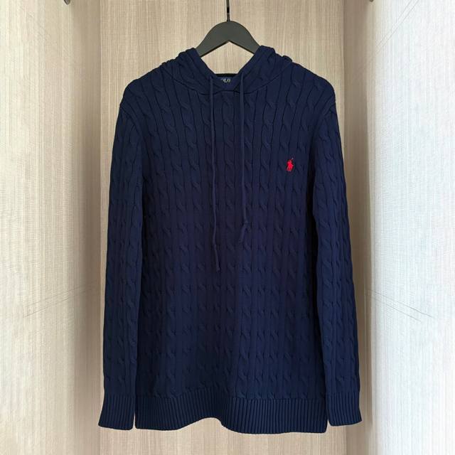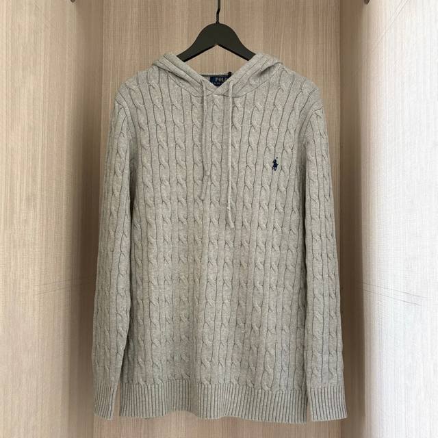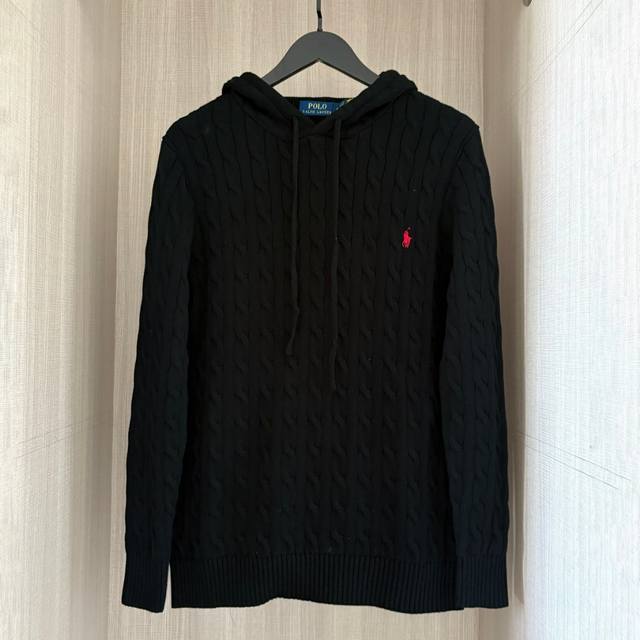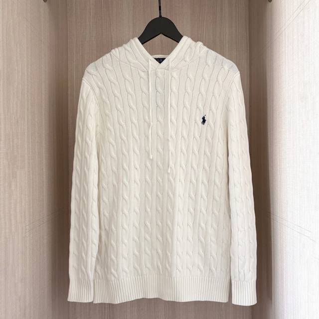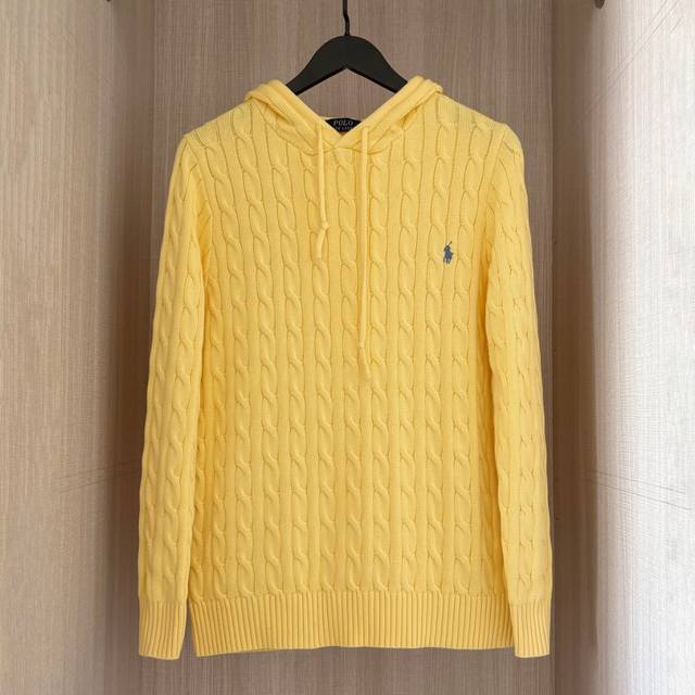 W618- Ralph Lauren Six-Color Classic Embroidered Hooded Long-Sleeve Pullover Knit Sweater for Men and Women. Available in six colors: white, yellow, gray, brown, navy, and black. Sizes: S, M, L, XL. Material: Cotton. Weight: 800g.