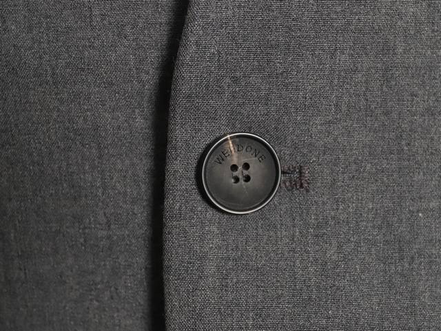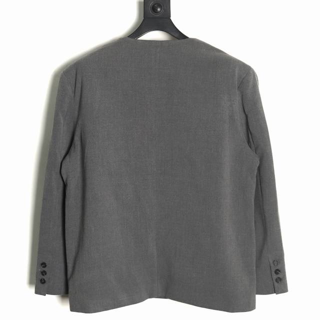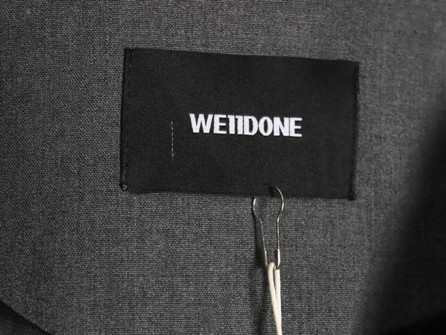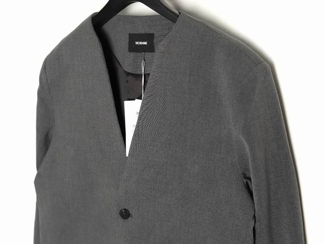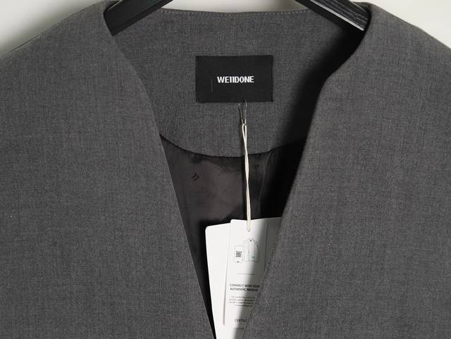 We11 Done 24Fw G-Dragon's collarless wool suit. Custom-made fabric: 300g wool blend. Gray custom weave and dye. A month's production. Custom-made memory foam lining to match the original. The front double placket is thicker than the back and sleeves. Custom-made shell buttons. Custom 11 logo lining. Custom-made trims. Unisex style. Loose fit. Highly detailed and textured. International superstar G-Dragon's collarless suit. Sizes: S, M, L,